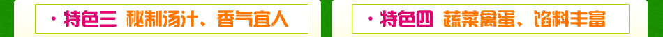 在结合传统制作方法的基础上反复研究,采用浓香型和清香型调料相融和,秘制出口味独特的汤料包,在专用的炉具中温火炖制而成的汤汁不仅香气扑鼻而且味道鲜美,营养丰富。